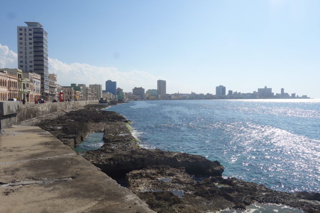 Ewig lang, wirklich schön und sehr abwechslungsreich. Havanna liegt direkt am Meer und besitzt daher, und weil es die Hauptstadt ist, natürlich einen Hafen. Die Hafenpromenade fängt an einem Ort mit vielen kleineren Schiffen, ein paar schlichten Hütten und Häusern und einer Brücke an, und geht bis runter zum großen Aussichtspunkt. Und von hier aus hat man wirklich eine traumhafte Sicht auf die Skyline und die Hafenpromenade Havannas.