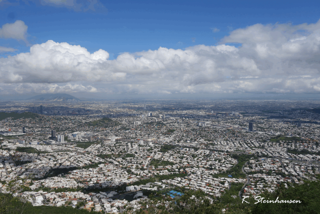 Eventually, I fought my way through and actually arrived at the point where the special rock formation is and you have a view of Monterrey. And what can I say? The somewhat adventurous climb, during which I almost turned back more than once, was well worth it. Because the view was really great, the rock formation a special ad-on and I was really happy to have achieved this view. So Happy Kat 😊