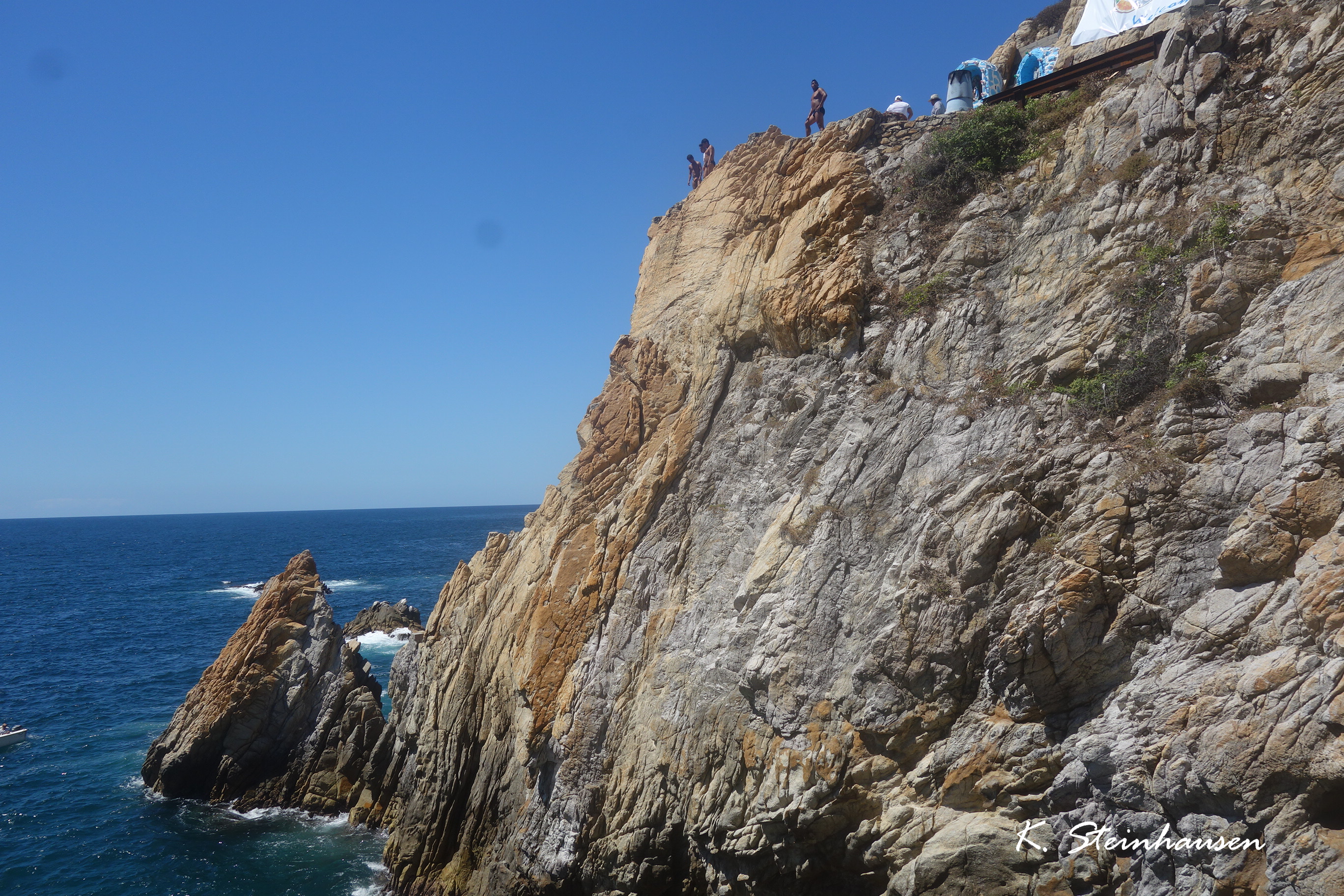 ¡Cliff jumpiiiing! 😀 Sí, ya sé que no es para gente con miedo a las alturas, pero… aunque para mi personalmente fue gran decepción, ya que me encanta cliff jumping, en Acapulco no saltas tú desde el acantilado. Ves un show de cliff jumpers profesionales. Así que las personas con miedo a las alturas pueden seguir leyendo 😀 😉