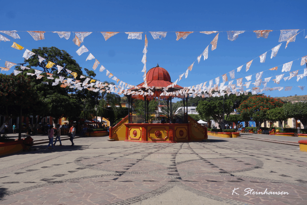 Por cierto, lo llamo «pueblo pequeño» porque Tequila consiste básicamente en una catedral, algunos museos y tiendas de tequila y campos de tequila. Osea es realmente pequeño y básicamente consiste de tequila 😀 Como yo no bebo alcohol y, sinceramente, sabía que aún me quedaba un poco de viaje por delante, no me llevé Tequila de Tequila para nadie en casa. Pero si me picaba en las manos. Y con un poco más de planificación, probablemente también habría hecho una excursión a los campos de tequila, porque creo que se puede hacer.